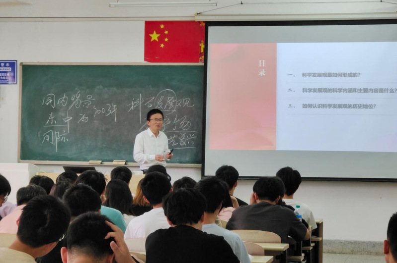 周存久紧扣教学目标和课程特点,围绕《毛泽东思想和中国特色社会主义理论体系概论》专题九——科学发展观的历史地位这一内容展开教学。周老师践行立德树人根本任务,坚持以学生为中心,用生动案例深刻阐述这一思想的历史地位,提升了学生的认知水平。